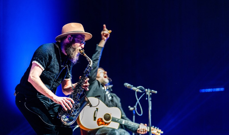 »S tabo je lepo, s tabo toplo, s tabo lahko potipam nebo,« so božale besede nove skladbe, ki nosi naslov S tabo je lepo. In ko se je občinstvo dovolj raznežilo, je sledilo še eno presenečenje. Najnovejši član Hamo & Tribute 2 Love, Anže Zaveršnik, je zapustil klaviature in za srce prijel saksofon. Čarovnija tistega trenutka je vse objela v modrini, ki jo je ekipa pričarala, kot smo že vajeni na njihovih koncertih, s prav posebno igro luči, svetlobe in senc.